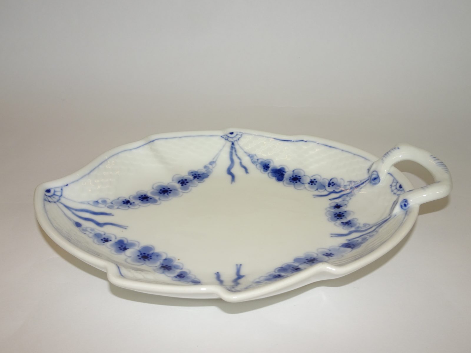 Empire stellet fra Bing & Grøndahl – nu en del af Kongelig Porcelæn. Stellet er produceret siden 1904 hvor det blev formgivet af Harriet Bing (gift med Bing i B&G). Her er det en bladformet assiet i flot og hel stand, 1. sortering, nr. 43.