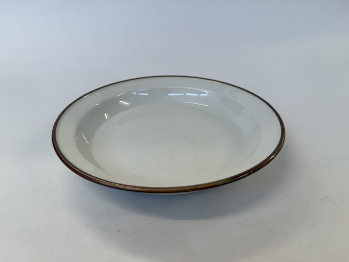 Flot dyb tallerken i stellet Brun Domino fra Royal Copenhagen. Den fremstår i flot og hel stand, nærmest uden brugsspor med nr. 14925 i 2. sortering.