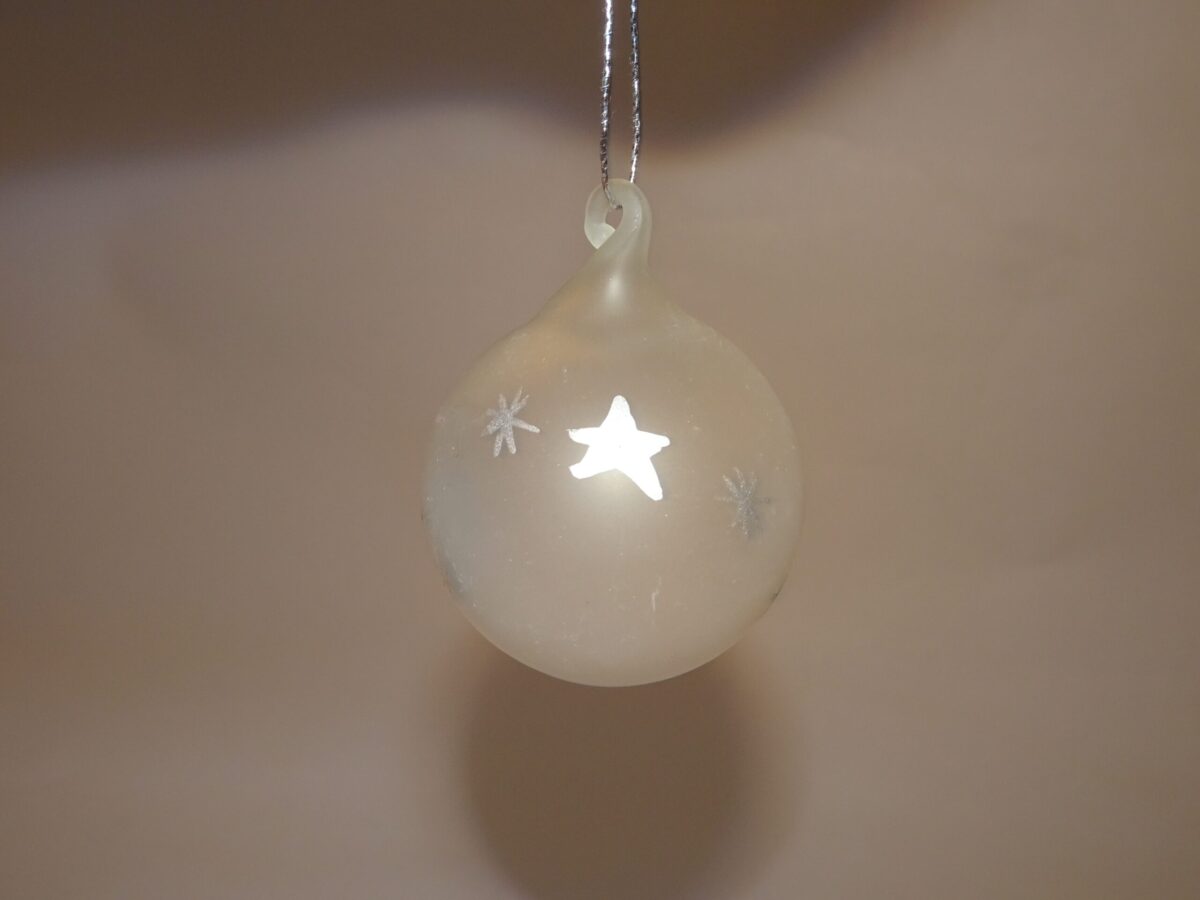 Frostet juletræs kugle med sølv stjerne d: 4 cm