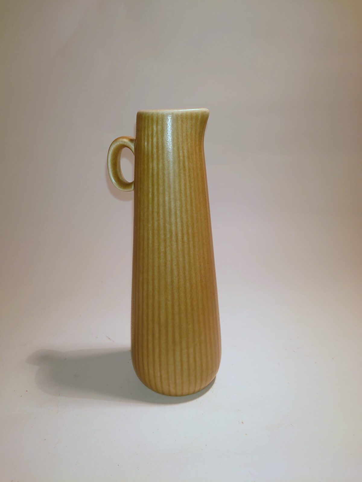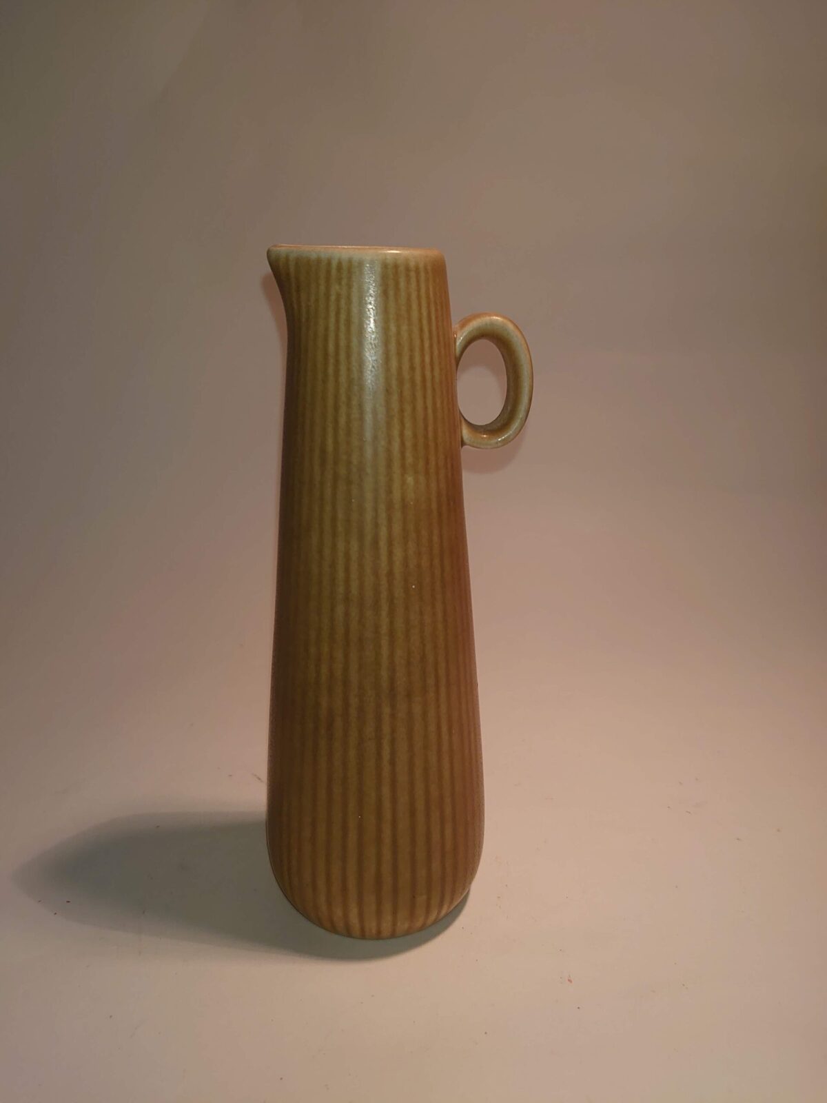 Fin og lækker keramik kande i mat grøn glasur fra Ritzi serien, Rörstrand, formgivet af Gunnar Nylund. Kanden fremstår i flot og hel stand.