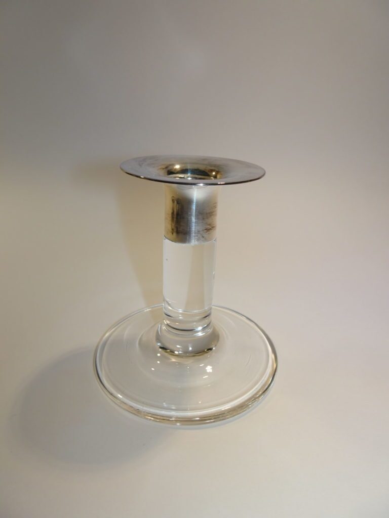 Lysestage i glas med sølvkrave h: 11 cm, Kosmos, Holmegaard