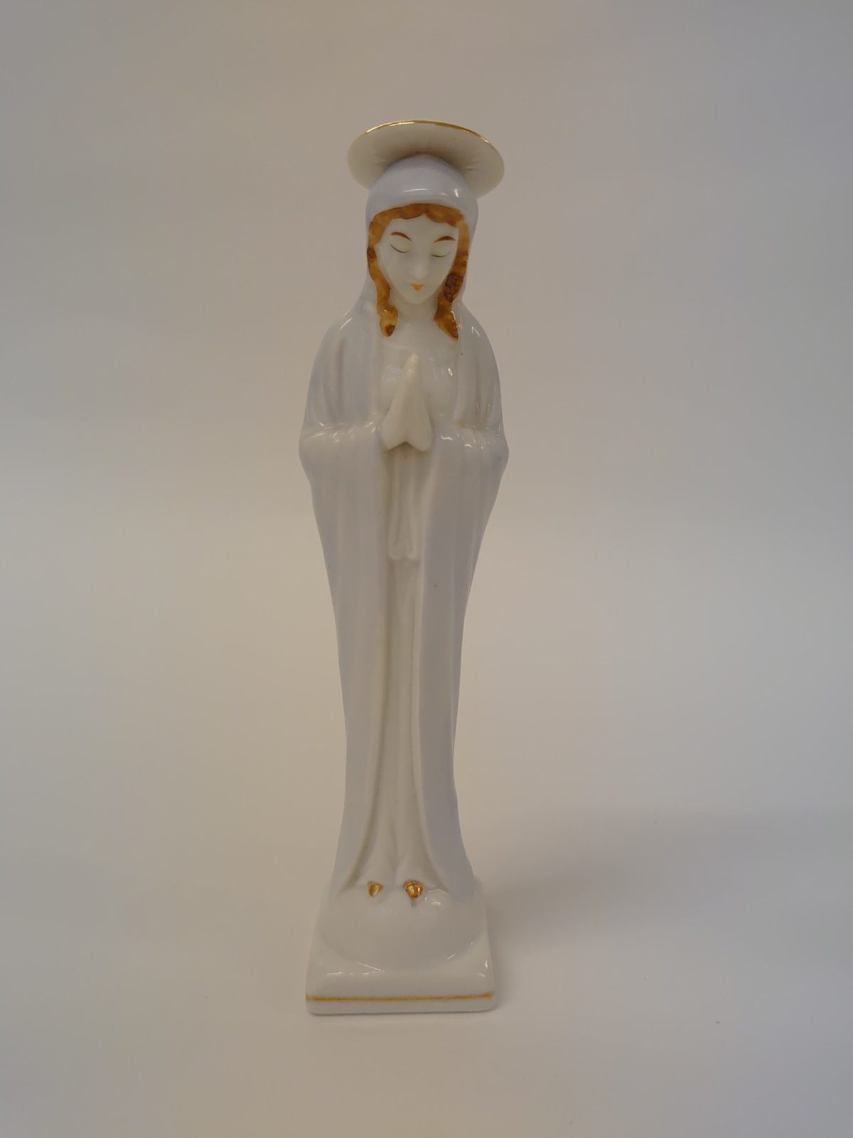 Fin lille madonna figur i porcelæn. Den fremstår i flot og hel stand.
