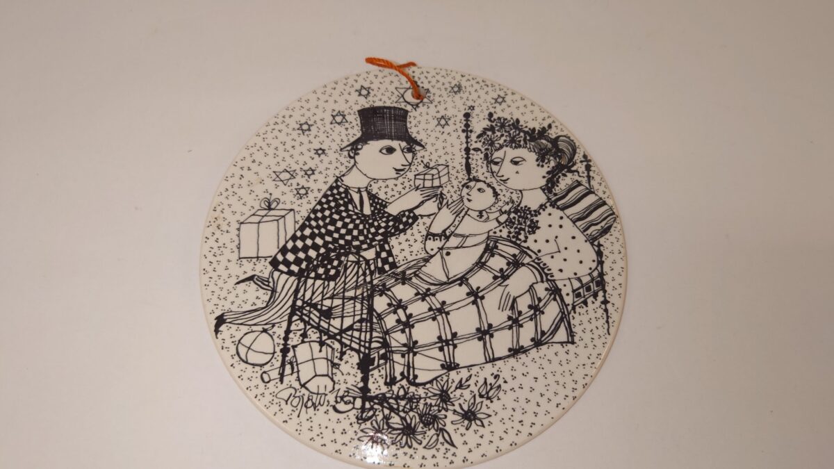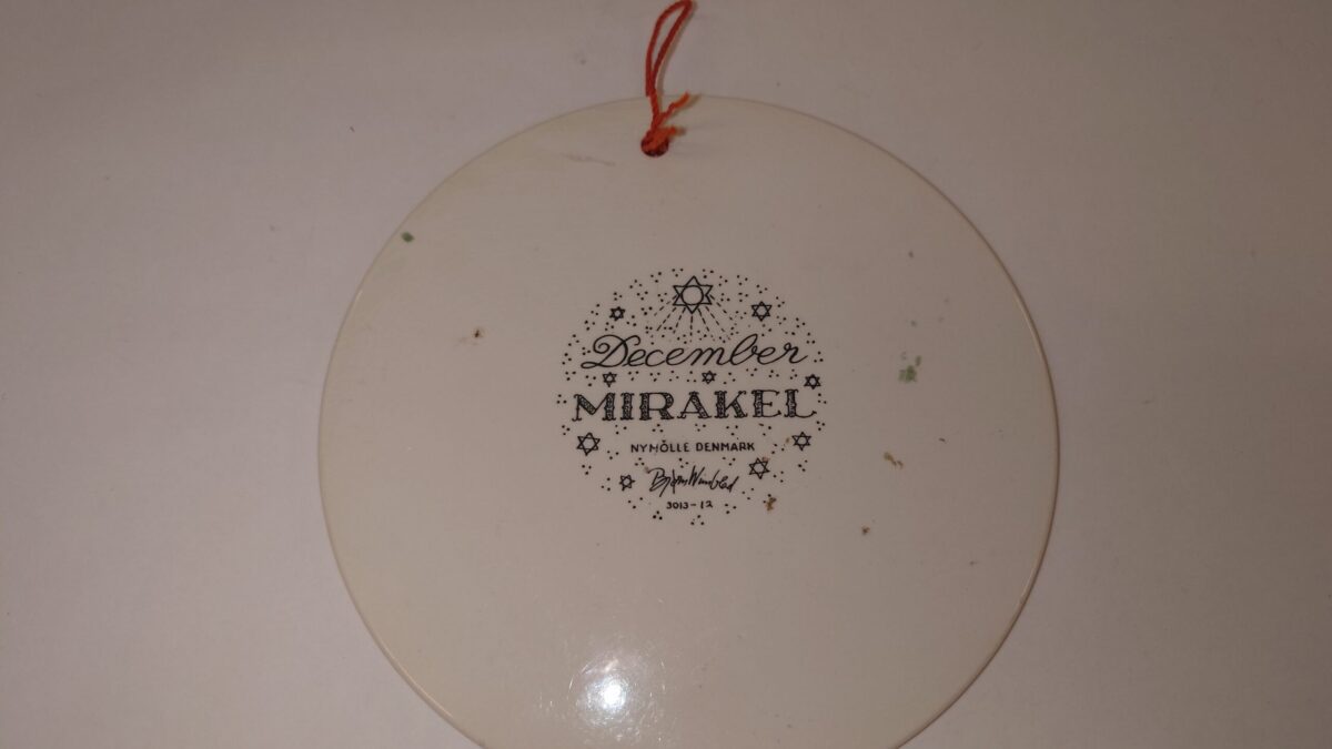 Fin platte til ophæng eller til brug som lille tallerken. Lavet af Bjørn Wiinblad i hans kendte streg. Denne med motiv for december med krybbe scenen fra juleevangeliet. Den fremstår i flot og hel stand.