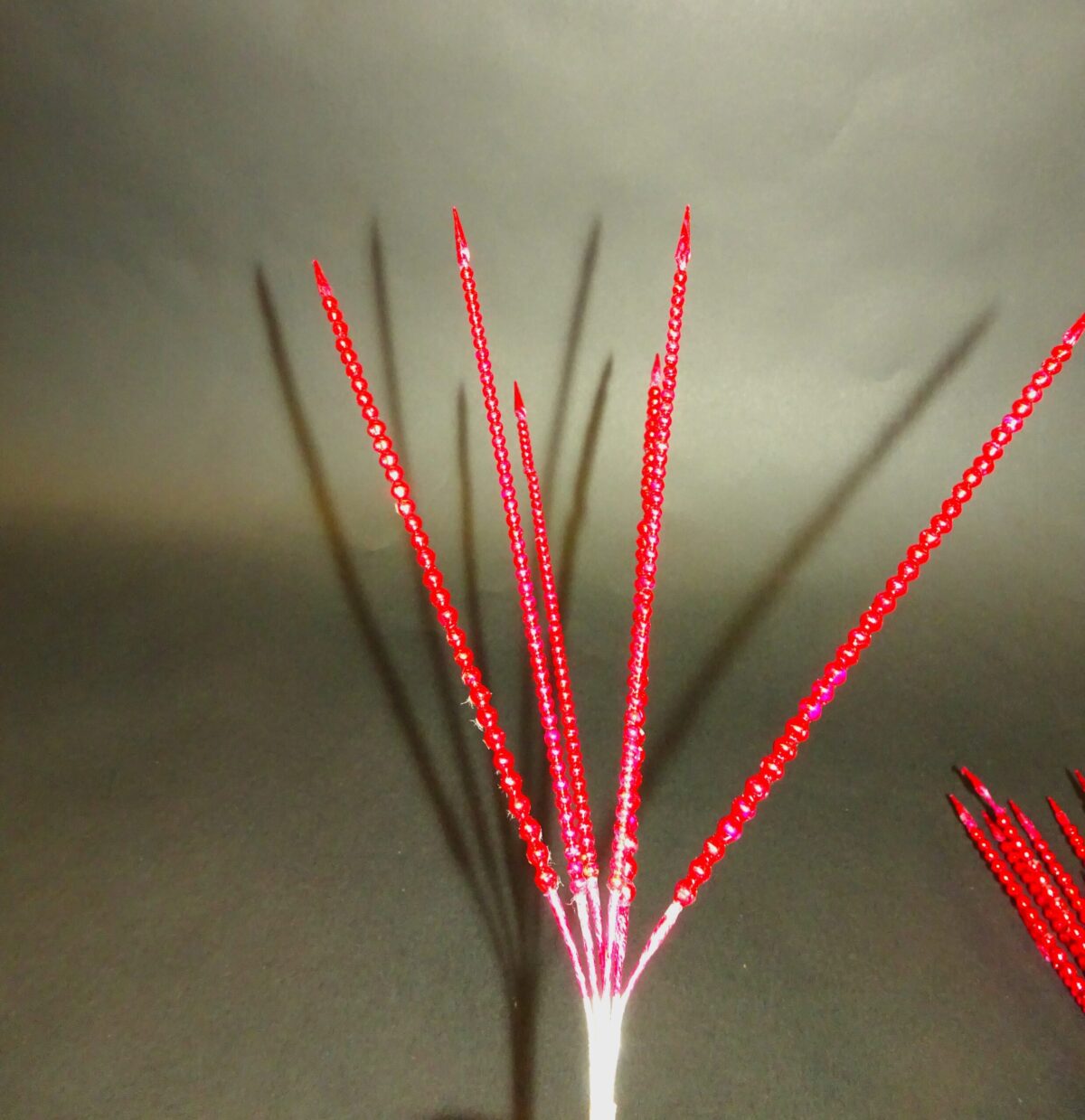 Flot pyntegren til julens blomster og dekorationer med massevis af bitte små røde glaskugler – og ja, de kan godt gå i stykker. Hver “pind” har 6 grene der sættes som man vil.