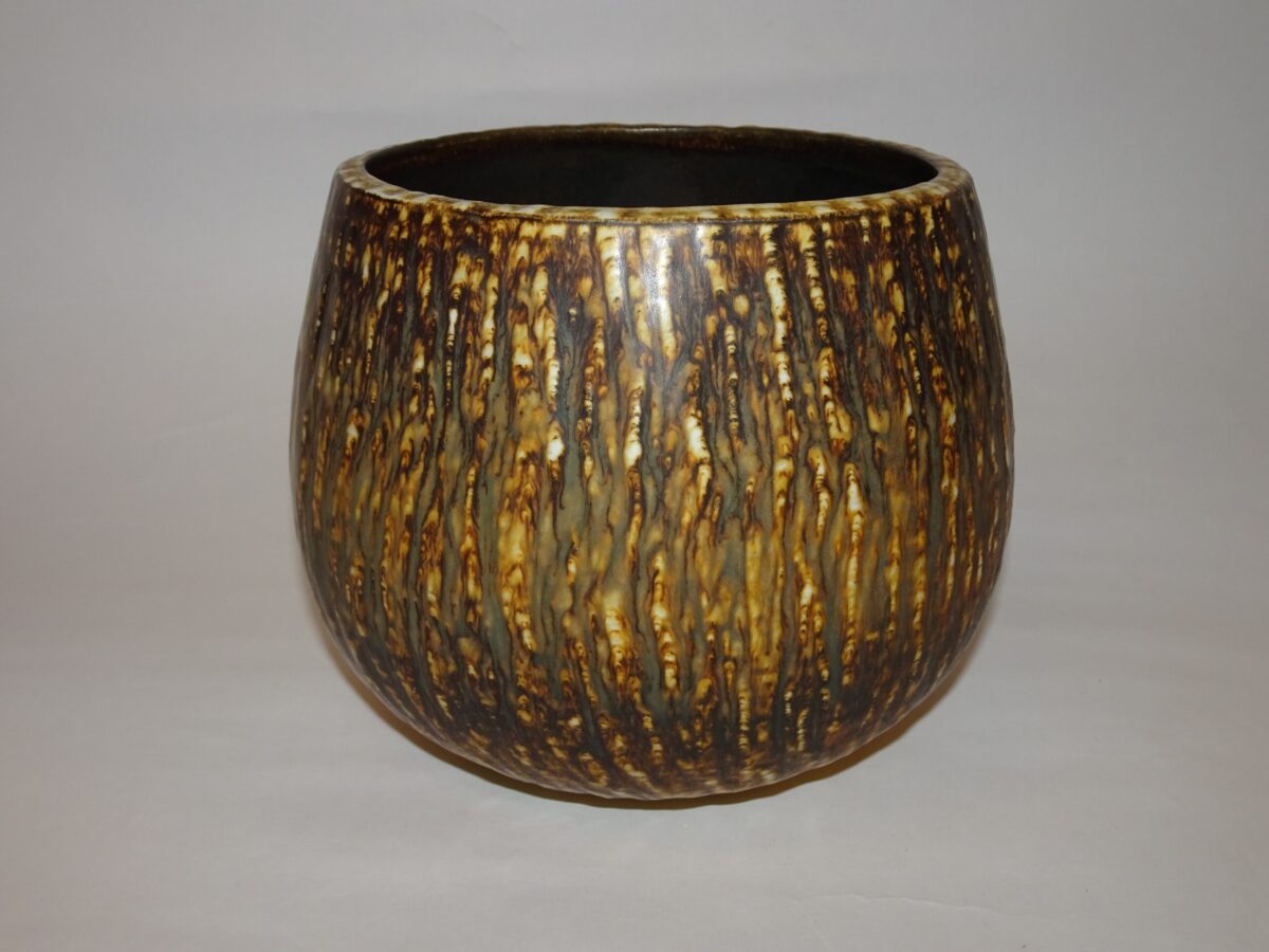 En meget smuk krukke lavet af Gunnar Nylund for Rörstrand som en del af serien Rubus. Den fremstår i en meget smuk gylden grøn nubret glasur i 1. sortering. Den er hel og fejlfri.